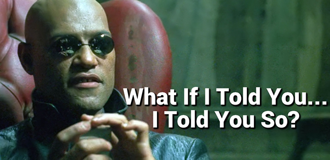 The next time you hear the I told you so, just reply “Indeed you did…I told you so!” That will screw up their mind!